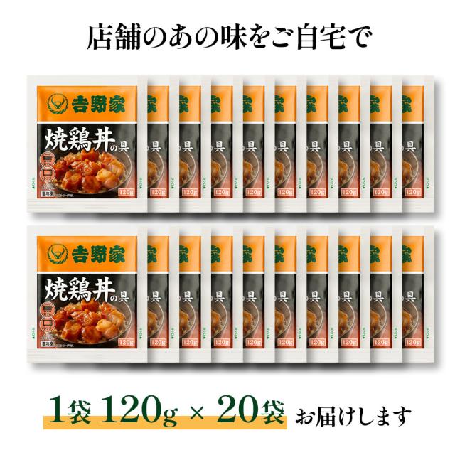 吉野家焼鶏丼の具120g×20袋 | 焼鶏丼 冷凍 焼鶏丼の具 吉野家 20袋 レトルト 簡単調理 時短 夕食 お弁当 一人暮らし グルメ ギフト 贈り物 惣菜 冷食 鶏肉 まとめ買い