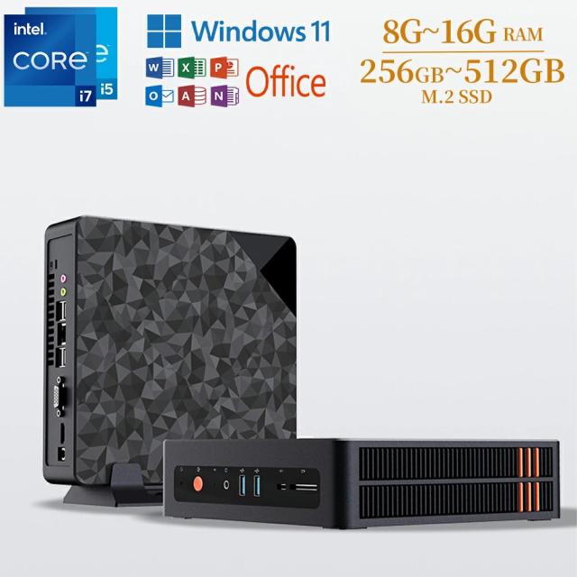 ミニPC 新品 Windows11Pro ミニパソコン Windows11PRO デスクトップパソコン office付き intel core i5 i7 mini pc 【メモリ8G~16GB SSD256GB~512GB】 超軽量 静音 小型 wifi BT4.0 初期設定済 持ち運び PSE認証 2年保証