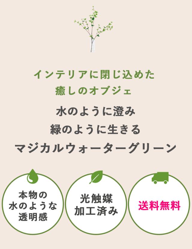 マジカルウォーター*グラスガーデン ロング アートグリーン ドーダンツツジ 光触媒 観葉植物 フェイク インテリア グリーン おしゃれ 誕生日 プレゼント 友人 お祝い お誕生日 ギフト 自分用 自宅用 デスク 玄関 リビング 引っ越し祝い アーティフィシャルグリーン お歳暮