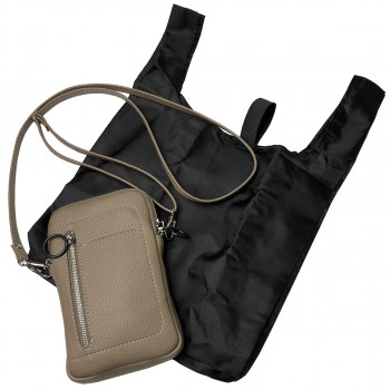 送料無料 Pisoraro(ピソラロ) エコバッグ付スマホポシェット グレージュ PR130 エコバッグ付きスマホポシェット
