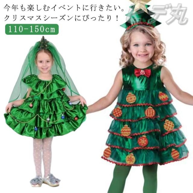 子供 ワンピース サンタ 高校生 おしゃれ クリスマスツリー コスプレ 衣装セット ワンピース ジュニア キッズ レディース コスチューム 140 女の子 かわいい 小学生 中学生 コスプレ 変装 仮装 子供服 110 120cm 130 クリスマスツリー 150