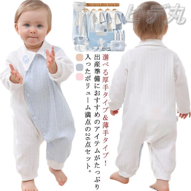 | 出産準備におすすめのアイテムがたっぷり入ったボリューム満点の26点セット。 オールシーズンお使いいただける、厚手タイプと薄手タイプをご用意しました。 赤ちゃんのデリケートなお肌に安心のコットン素材を使用。 生まれてすぐから着用出来ますので、退院の時やお披露目にも大活躍。 出産準備はもちろん、赤ちゃんとの記念日を彩るセレモニーアイテムとしても活躍! | |