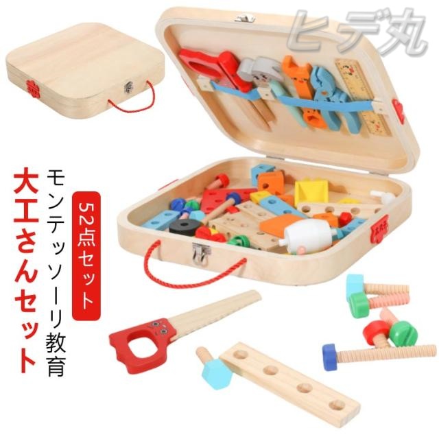 男の子 木製おもちゃ 組み立て 知育玩具 工具おもちゃ 女の子 大工さんセット 52点セット ツールボックス 大工さんセット 木のおもちゃ 工具 ままごと ごっこ遊び 大工さんごっこ 玩具DIY 知育玩具 モンテッソーリ 子供人気 収納ボックス付き 誕生日 クリスマス