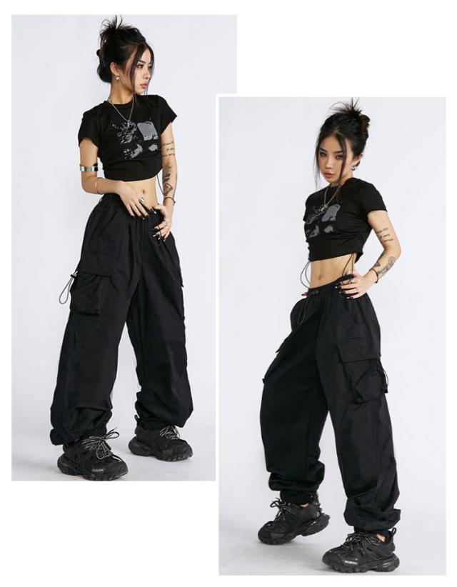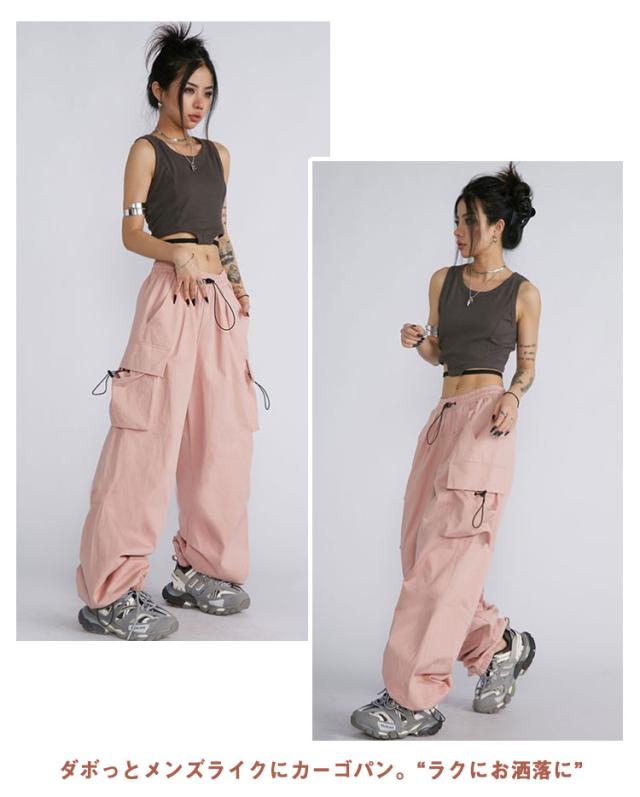 作業着 カーゴパンツ ダンサーパンツ ピンク レディース ダンス衣装 グレー ヒップホップ ストリート系 大きいサイズ おしゃれ 黒 ブラック ゆったり