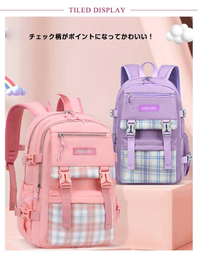 | おしゃれでかわいい大容量なリュックサック。大容量キッズリュック。 チェック柄がポイントになってかわいい! 収納力抜群で大容量&いろんなシーンで使いやすいリュックです。 防水性に優れた素材なので、撥水性、防汚効果が良く、また耐摩擦性に強くなっています。 クッション材を使用する事で、痛くなりにくいです。 リュックはポケットが多いので、様々な物の収納に便利です。 様々なシーンで大活躍!通塾、通学などのデイリーユースに入学準備、普段使い、社会見学、旅行、レジャー、遠足、修学旅行、プレゼントとしても大変喜ばれています。 | |