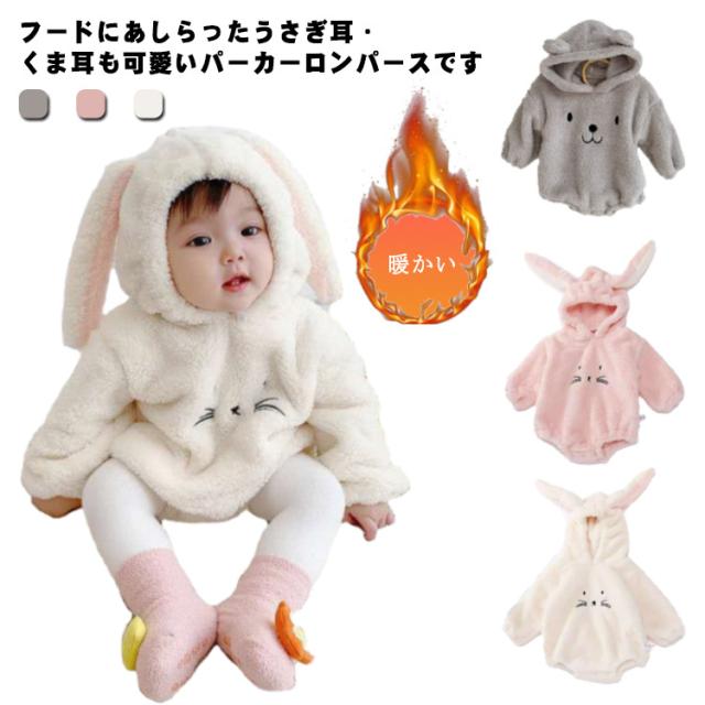 66 ベビーウエア ロンパース 男の子 パーカー フリース 子供服 ベビー フード付き あったか ベビー服 新生児 子供パーカー カバーオール クマ耳 うさぎ耳 女の子 ふわふわ 赤ちゃん服 秋 出産祝い 着ぐるみ 長袖 春 暖かい 冬 送料無料 90 73 80 ボア