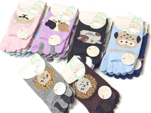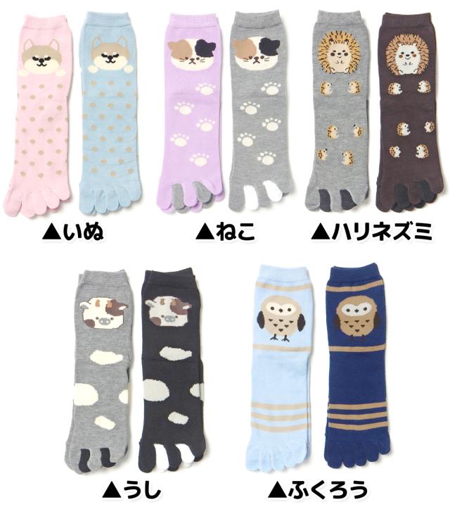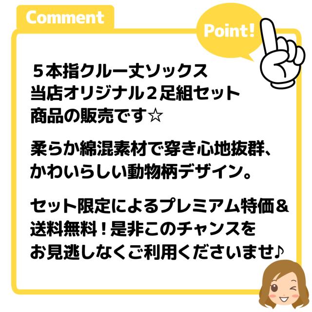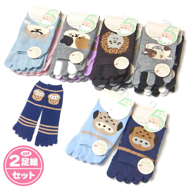 【送料無料】2足組セット 婦人 レディース 5本指 クルー丈 ソックス 靴下 綿混 かかとあり 動物柄 22-24cm yg-3079【メール便対応】