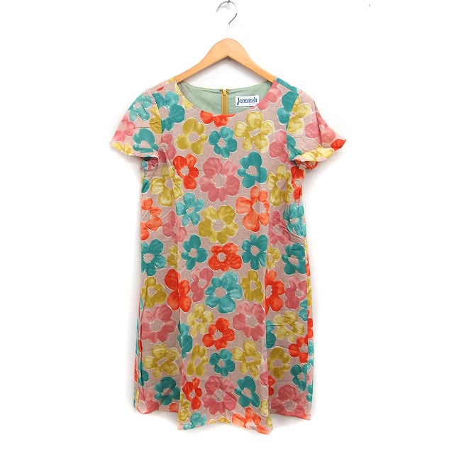 【中古】ホコモモラデシビラ Jocomomola de Sybilla 花柄 フレア ワンピース 半袖 ひざ丈 コットン 綿 42 ベージュ
