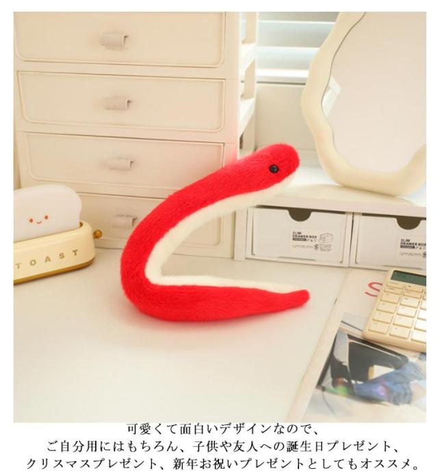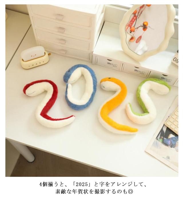 | 腕や首に巻きつけたり、お好きな形に曲げたりできる蛇のぬいぐるみ。 ふわふわ思わず触りたくなる素材、小さなお子さまにも安心して遊んでいただけます。 4個揃うと、「2025」と字をアレンジして、素敵な年賀状を撮影するのも◎ 可愛くて面白いデザインなので、ご自分用にはもちろん、子供や友人への誕生日プレゼント、クリスマスプレゼント、新年お祝いプレゼントとしてもオススメ。 | |