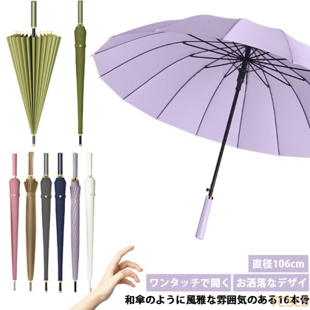 長傘 雨傘 レザーハンドル ストレートハンドル ワンタッチ ジャンプ式 軽量 軽い 男女兼用 16本骨 長傘 撥水 抗風 耐久 頑丈 豪雨対策 折れにくい ロングアンブラ おしゃれ 和風 大きい くすみカラー レディース メンズ 傘
