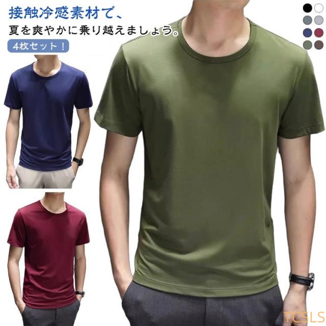 接触冷感 薄手 爽やか 肌着 接触冷感 ひんやり 速乾 半袖Tシャツ クルーネック 防臭 ストレッチ トップス 伸縮性 吸汗性 抗菌 通気性 無地 インナー 4枚セット 冷感 カットソー 半袖 4枚セット トップス 夏物 スポーツ アウトドア Tシャツ