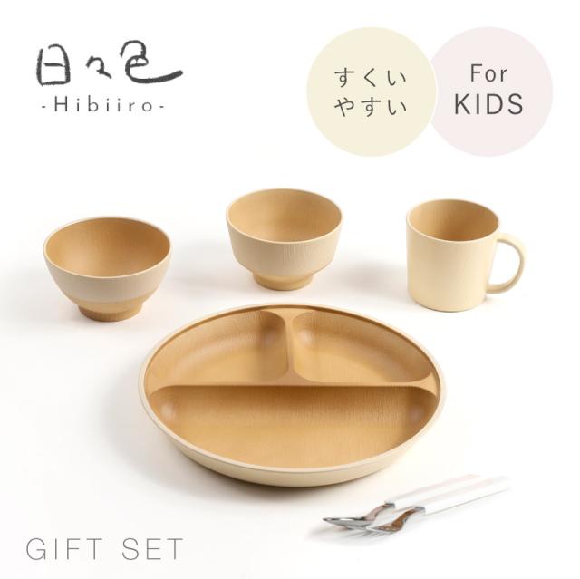 丸いワンプレート・お茶碗・汁椀・マグカップ・スプーン・フォークの6点が揃ったセットです。ギフトボックス入りで、出産祝い・ベビーギフト・1歳のお誕生日プレゼントにも喜ばれています。「日々色」シリーズは、日本の自然や文化から生まれた美しい伝統色をイメージした、すくみカラーの器。やさしい色合いが、手に取るだけで心を和ませてくれます。
