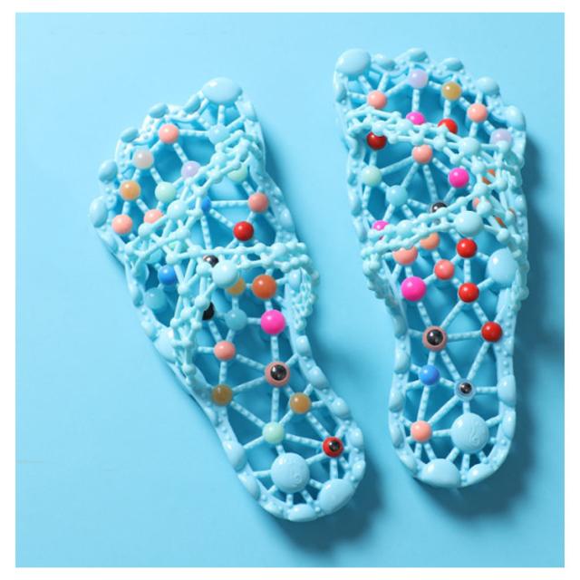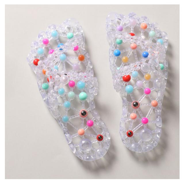 | この健康サンダルは足つぼを刺激することにより、全身のとリラクゼーションを図ることができます。海やプール、自宅やオフィスなど、あらゆる場所での使用が可能です。適度な刺激が初心者でも継続しやすく、健康維持の一助となります。 耐水性と速乾性を備えた素材を使用しているため、水辺のアクティビティに最適です。脱いだ後の不快なニオイを残さず、丸洗い可能でいつでも清潔に保てます。また、ムレにくい設計は蒸し暑い夏場にもぴったりです。 滑り止め加工が施されたこのサンダルは、滑りやすい場所でも安心して使用できます。柔らかいPVC素材が足を優しく包み込み、長時間履いても疲れにくい構造です。 屋内外を問わず活用できるこのサンダルは、日常の散歩から特別な水辺での活動まで、さまざまなシーンで役立ちます。耐水性に優れた素材を使用しており、ビーチやプールでの使用にも最適です。 | |