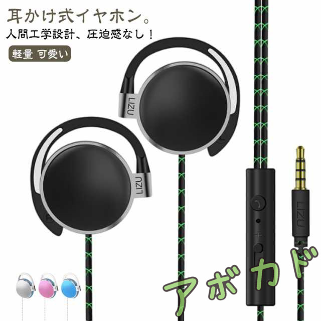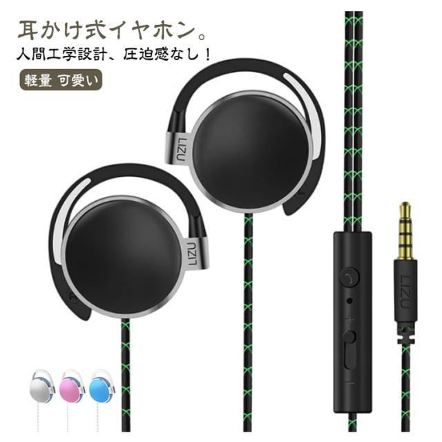 耳かけ式イヤホン マイク付き 有線 イヤホン 耳かけ 耳掛け型 ヘッドホン ヘッドセット 有線ヘッドホン ハンズフリー 通話 ランニング 3.5mm おしゃれ かわいい 黒 白 長時間 落ちない ラジオ 軽量 スマホ iphone android 可愛い ホワイト ピンク ブルー ブラック