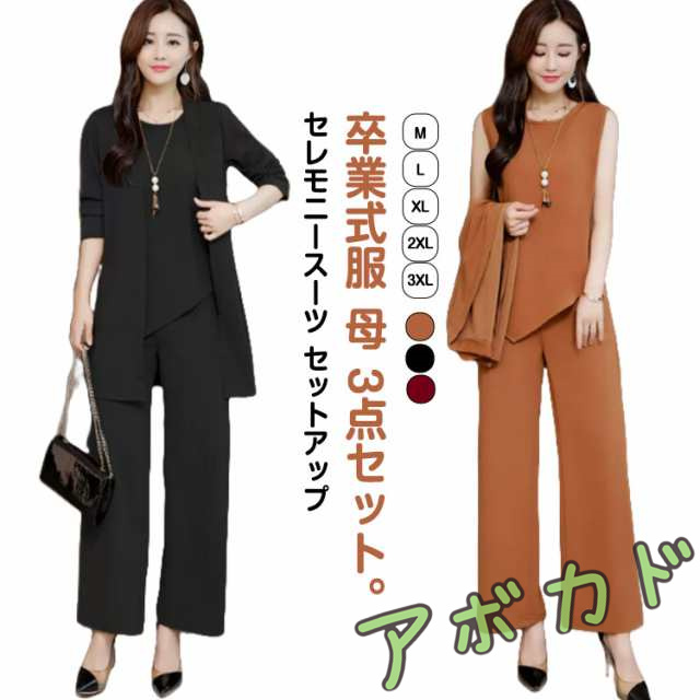 卒業式 服 母 レディース セットアップ セレモニースーツ 卒園式 服装 ママ 入学式 入園式 発表会 結婚式 記念日 パンツスーツ スーツジャケット ママスーツ 3点セット 七五三 お宮参り 通勤 OL 20代 30代 40代 50代 黒 ブラック 上下セット フォーマル 大きいサイズ S-5XL