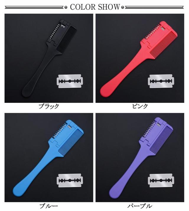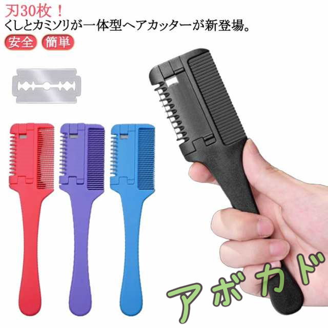 ヘアカットコーム 刃30枚付き セルフカットブラシ ヘアカットくし すきカミソリ ヘアーカッター 前髪 くし状カミソリ 自宅 散髪 前髪すき
