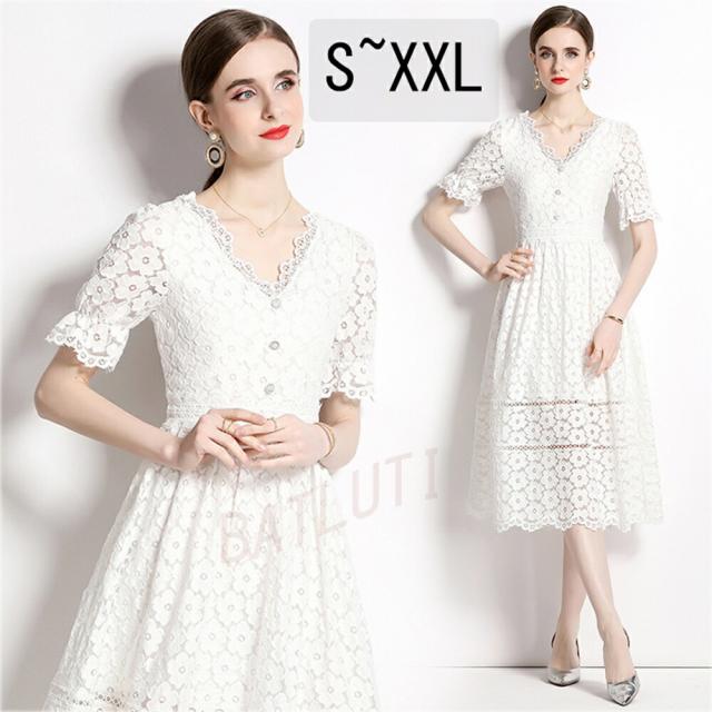 レースワンピース 半袖 ワンピース カジュアル ロング丈 ベストワンピス 二次会 リゾート 母の日 美シルエット 同窓会