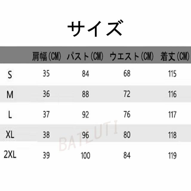 サイズ(cm):S、M、L、XL、XXL S:肩幅:35CM バスト:84CM 着丈:115CM ウエスト:68CM