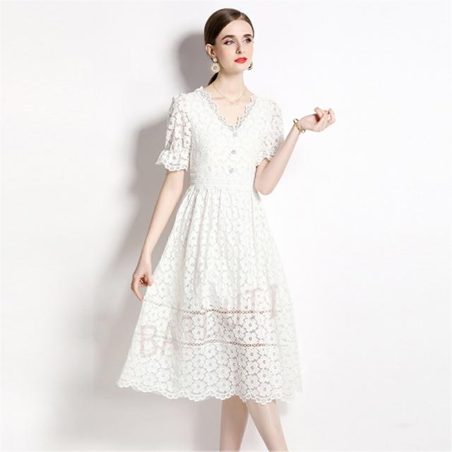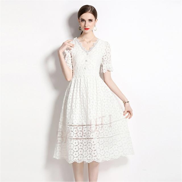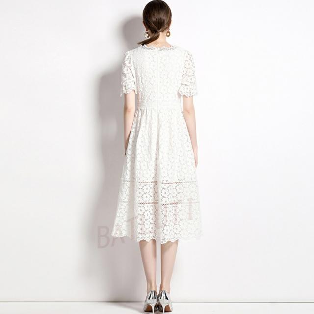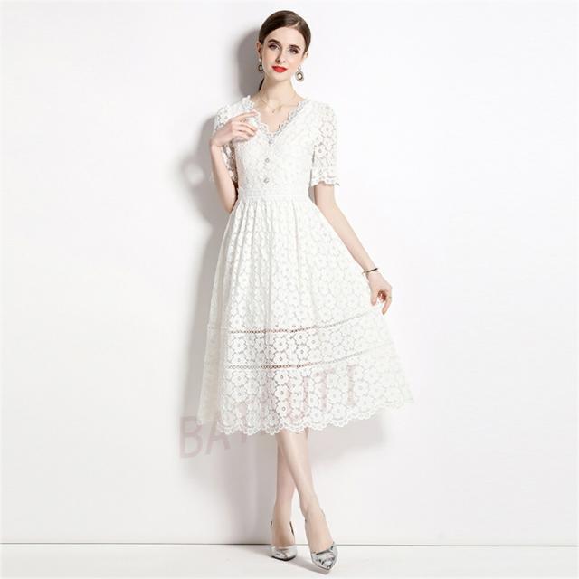 レースワンピース 半袖 ワンピース カ