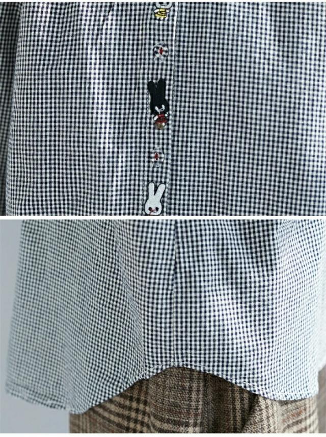 商品名 シャツ レディース 長袖 チェック柄 シャツ ブラウス 秋 トップス 綿混 シャツ チェック 刺? 大人可愛い 大きいサイズ ゆったり 体型カバー カジュアル 柔らか おしゃれ 森ガール 着回し 体型カバー かわいい 送料無料