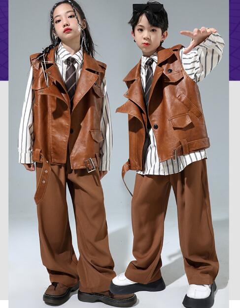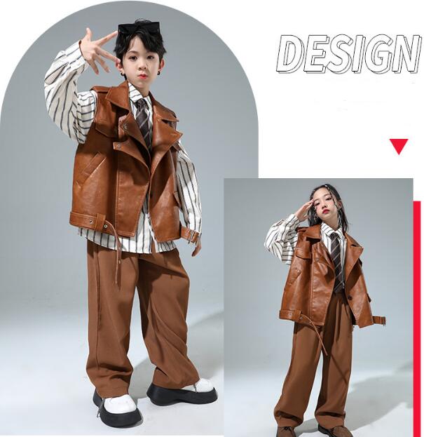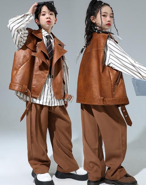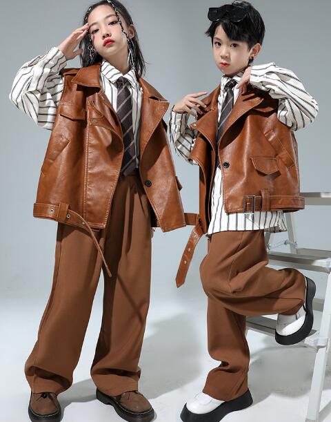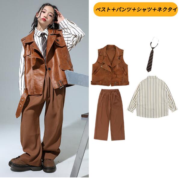 キッズ ダンス衣装 チアガール セットアップ パンツ レザージャケット ファッション 子供 ダンス 舞台 ヒップホップ 子供服 演出服 発表会 大量注文もok 120 130 140 150 160