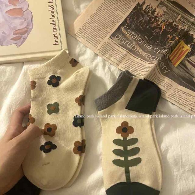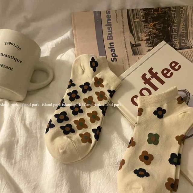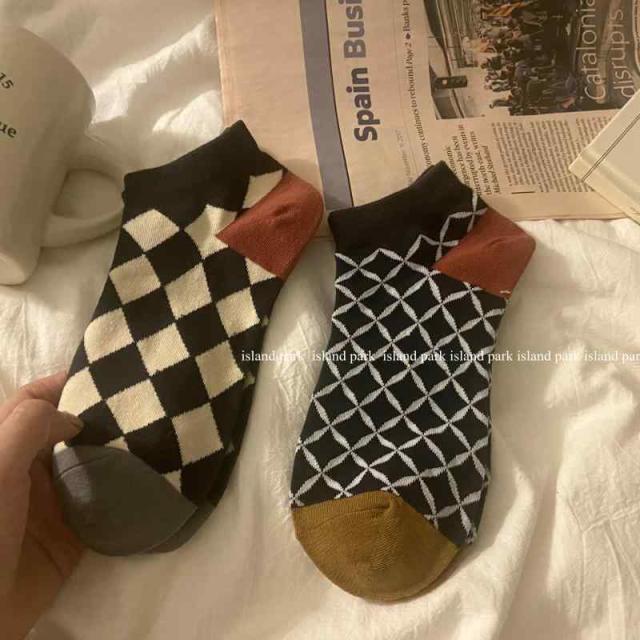 レディース 綿 ショート くるぶし ソックス 3足セット 3足組 ブロックチェック チェック柄 花柄 市松模様 格子柄 秋 冬