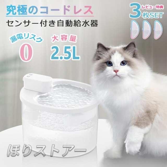 自動給水器 コードレス 猫 犬 ペット 給水機 センサー付き ペット用給水器 自動 2.5L 水飲み器 猫用給水器 犬用給水器 静音 自動給水器 軽量 濾過 大容量