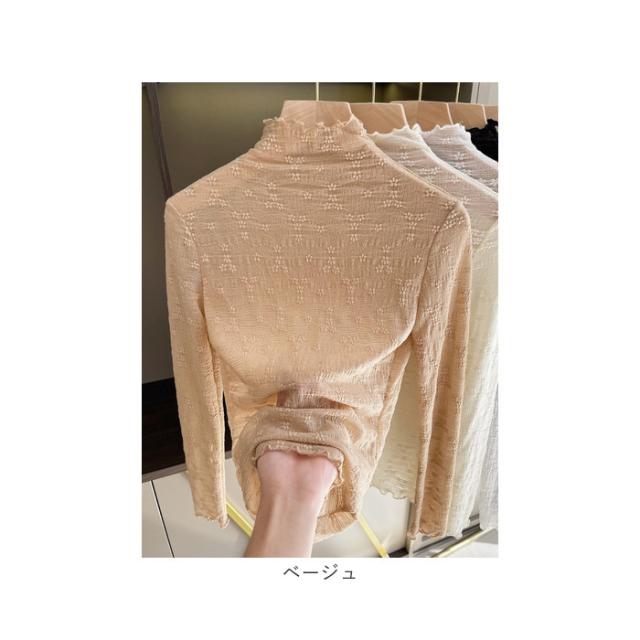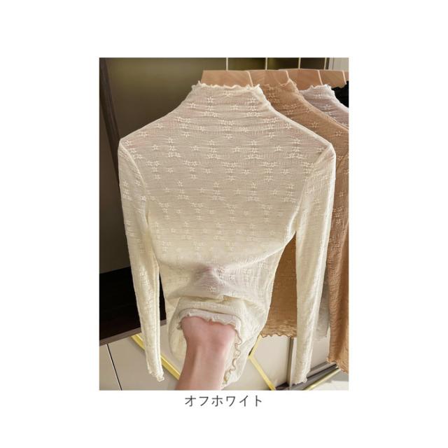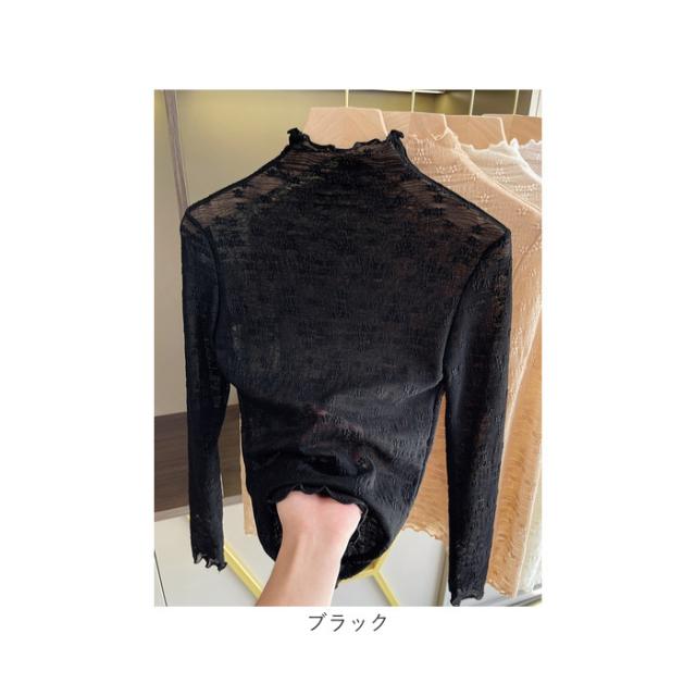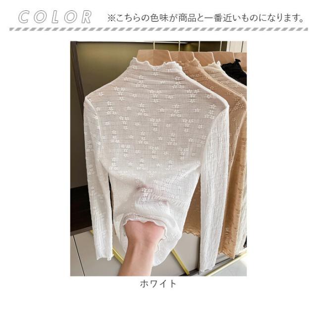 シースルー トップス 長袖 通販 シアートップス チュールトップス レーストップス 透け感 レディース 小花柄 ハイネック ボトルネック メッシュ レイヤード 重ね着 インナー カットソー 秋 冬 薄手 レディースファッション