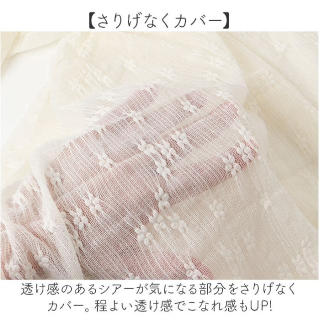 | 商品説明 | 【オシャレに隠せるインナー】 ・気になる部分をオシャレに隠せる♪シアー素材のファンデーションインナー。 【さりげなくカバー】 ・透け感のあるシアーが気になる部分をさりげなくカバー。程よい透け感でこなれ感もUP! 【チクチクせず敏感肌の方にも】 ・柔らかな生地を使用し、素肌に触れてもチクチクしない◎お肌が敏感な方でも使用可能◎ 【下着類のチラ見え防止に】 ・胸元や背中が大きく開いたドレスやトップスを着ている時の下着のチラ見え防止にも役立つ。 【薄手の生地感】 ・着心地軽やかでストレスフリー。ボトムスにインしても着ぶくれ感なし♪ 【幅広いシーズン使える】 ・キャミやブラトップはもちろん、ニットやセーターと合わせて春や秋コーデにも使える♪ |