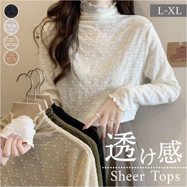 シースルー トップス 長袖 通販 シアートップス チュールトップス レーストップス 透け感 レディース 小花柄 ハイネック ボトルネック メッシュ レイヤード 重ね着 インナー カットソー 秋 冬 薄手 レディースファッション