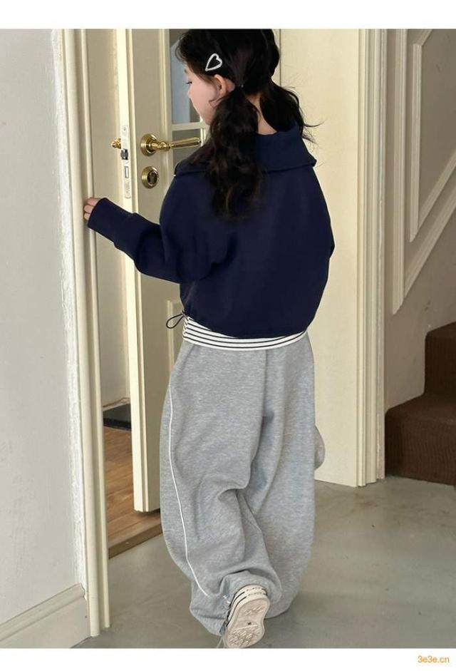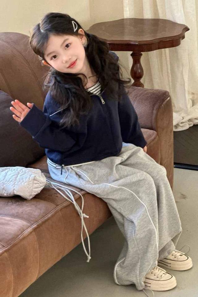 秋冬系 女の子 子供服 セットアップ 2点セット スポーツ風 新品 ネイビー 大人気 パーカー スウェットパンツ ストライプ柄