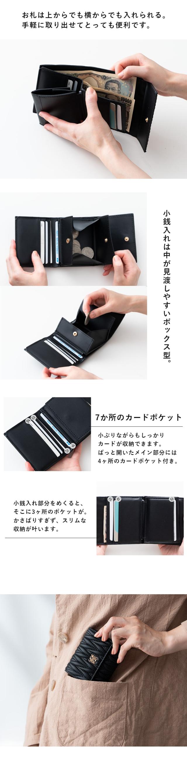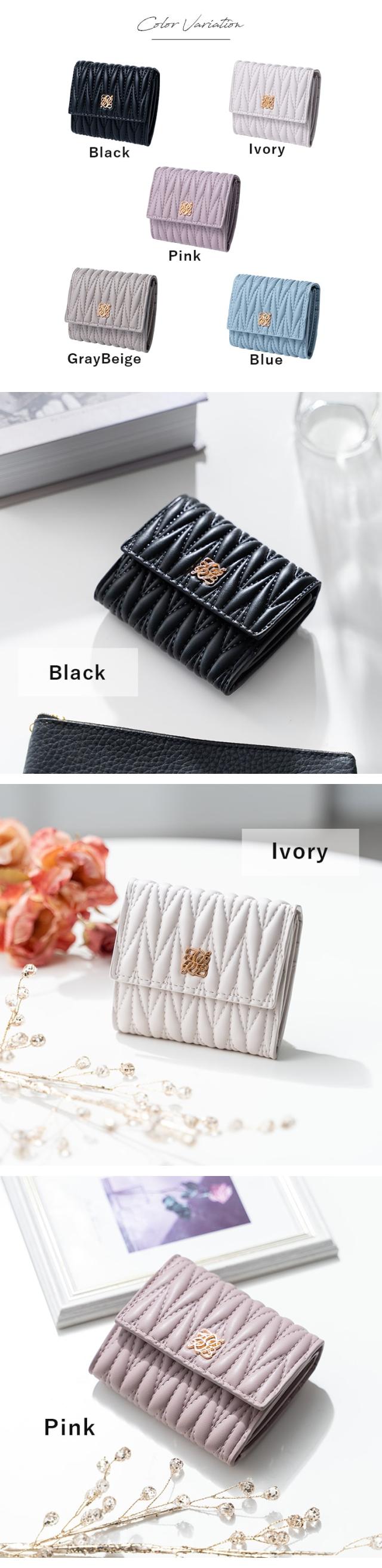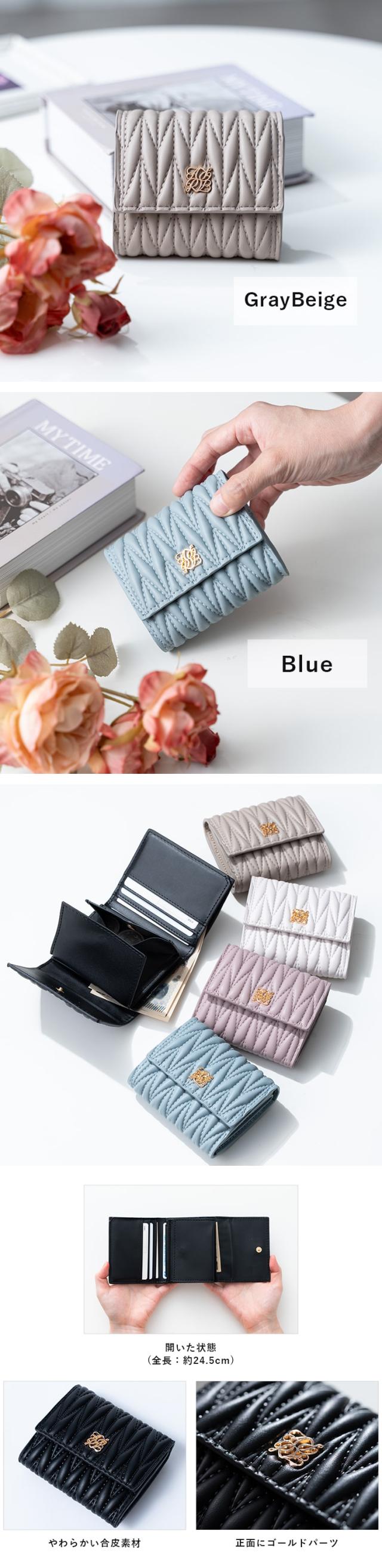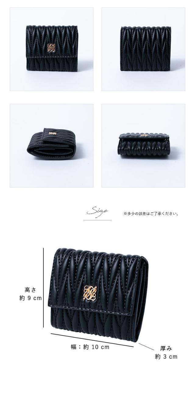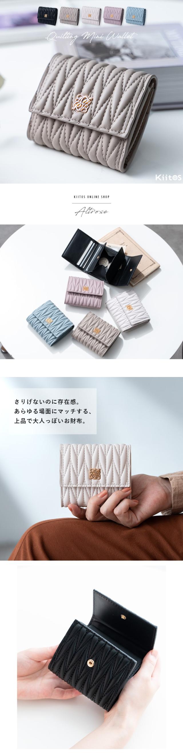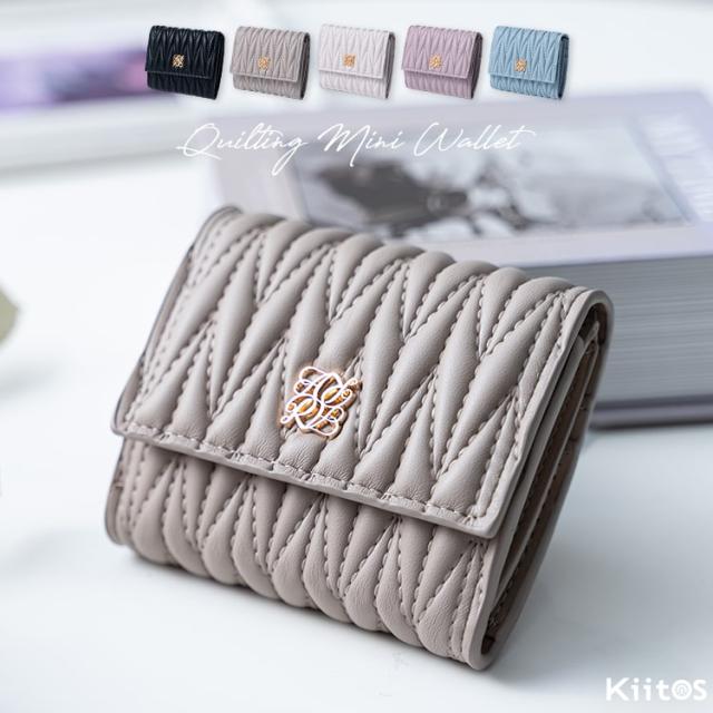 トレンド感のあるキルティングと小ぶりサイズが大人っぽい3つ折りミニ財布。