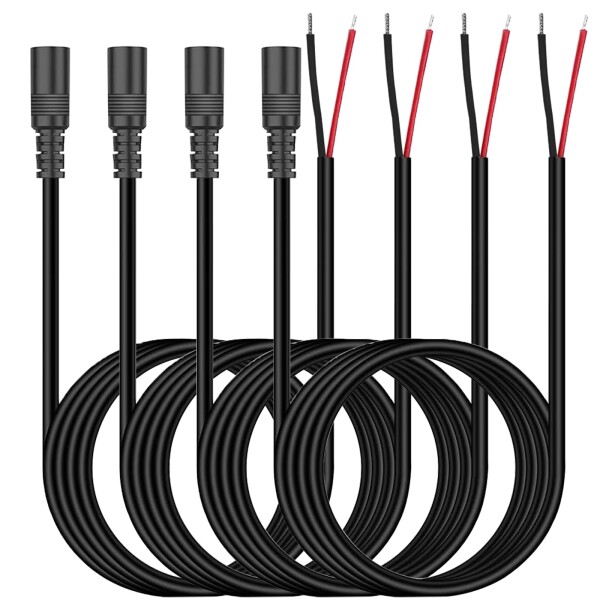 【製品仕様】20AWG DC電源ケーブル 5521素材:PVC+銅線。DCプラグ規格:外径約5.5mm、内径約2.1mm。全長100cm。伝送電流:5A;伝送電圧:12V。パケージ内容:オス DC電源ケーブル4本入り。