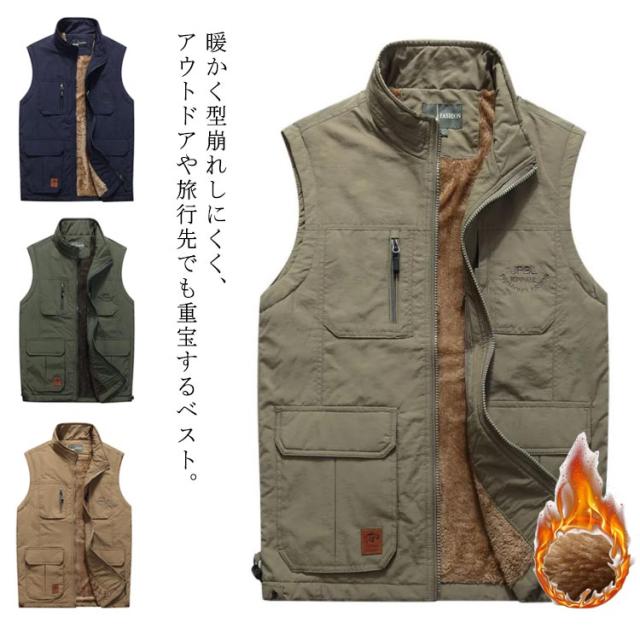 前開き ベスト 裏起毛 手ぶらベスト メンズファッション 早い者勝ち ライトカーキ キャメル ダークカーキ ネイビー L XL 2XL 3XL 4XL