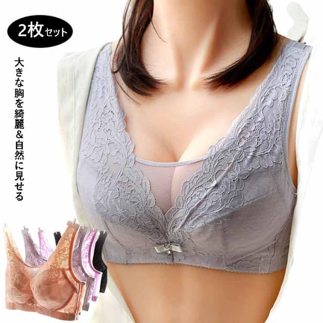下着 脇肉 ブラジャー 補正ブラ 夏用 2枚セット 胸 脇高 着痩せ ノンワイヤーブラジャー 補正ブラジャー 揺れない レース ブラ