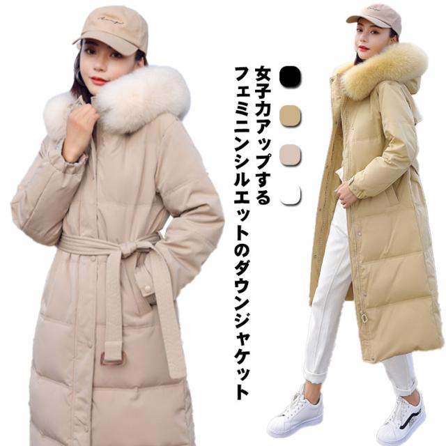 フェイクファー M 着痩せ 冬 ダウンジャケット アウター 防寒 ベルト付き L レディース S ロングコート 秋冬 ロング丈 ミセス 冬コーデ フード付き 母 20代 30代 ママ