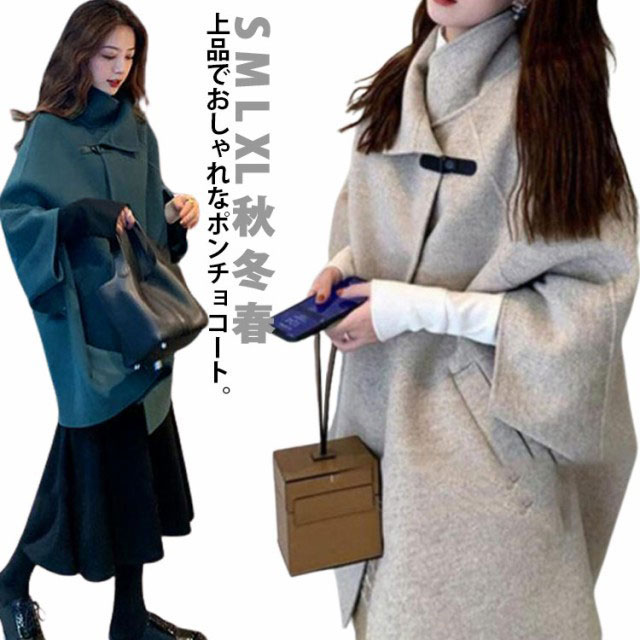 ポンチョコート 冬 高見え 韓国ファッ コート ジャケット 豊富 ベージュ ダークグリーン S M L XL