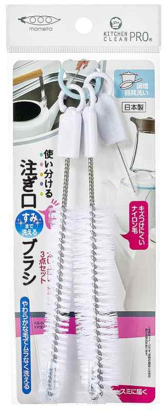 まめいた(Mameita) キッチン ブラシ ホワイト 大:幅2.5cm×奥行2.5cm×高さ18cm 中:幅1.5cm×奥行1.5cm×高さ17.5cm 小:幅0.6cm×奥行1.8cm×高さ7.4cm キッチンクリーンプロ 調理器具 注ぎ口 洗い やかん 調味料入れ ムラなく 洗える 束ねるリング付き 3本入 日本製 KB-644