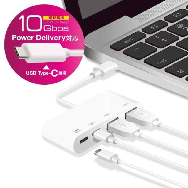 エレコム USBハブ USB Type c USB3.1Gen2 (Aメス2ポート/ Type-Cメス2ポート) バスパワー【USB PD対応】MacBook/iPad/Surface GO Pro 7 / Chromebook等 対応ホワイト U3HC-A424P10WH