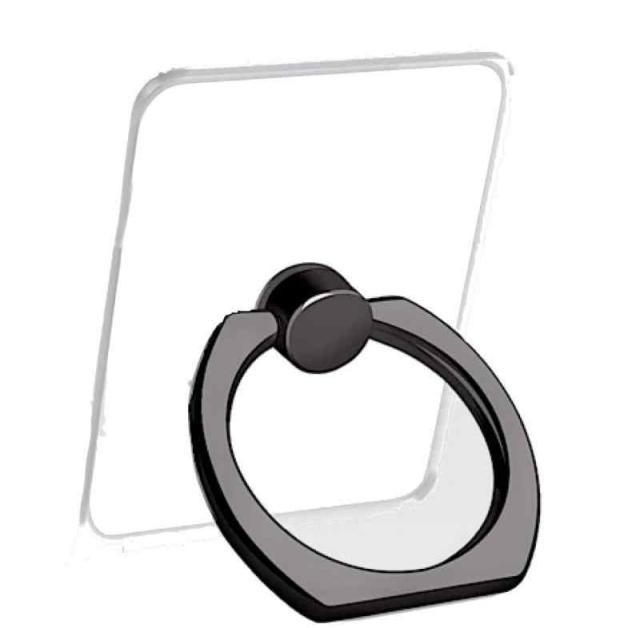 スマホリング バンカーリング 【mau qualit?】 クリア 携帯携帯 透明 薄型 ホールドリング 落下防止リング スタンド機能 バンカーリング 360回転 iPhone/Android各種他対応【1つ】 (ブラック)