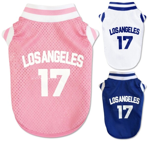 Stylish肉球 犬服 春用 ロサンゼルス 17号 通気性メッシュ 可愛い 洋服 アメリカンスタイル 小型犬〜大型犬 (ピンク, M)