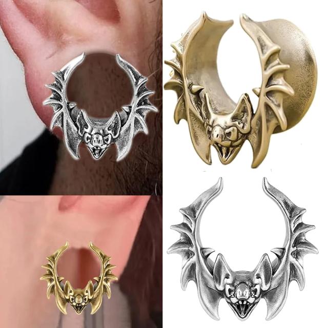[0G 00G 12mm ボディーピアス] コウモリダブルフレア ボディピアス 1個販売 蝙蝠 吸血鬼 バット バンパイア ドラキュラ シルバー 銀色 ゴールド 金色 立体 3D 真鍮 ホール系 メンズ レディース シルバー プレゼント ハロウインパーティー コスプレ 仮装 半円型 半月型