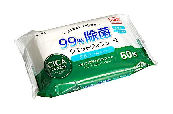 99%除菌ウェットティシュ アルコールタイプ CICAエキス配合 60枚入 (100円ショップ 100円均一 100均一 100均)
