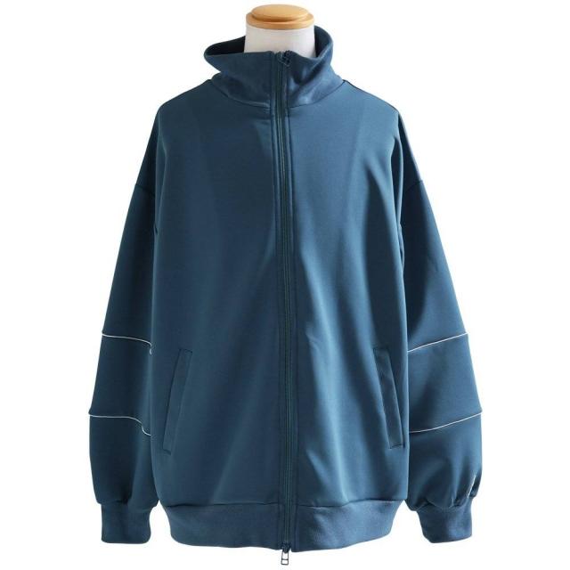 ジャージ おしゃれ メンズ レディース 長袖 ワイド ハイネック ストレッチ ダブルジップ ワッペン オーバーサイズ 大きいサイズ レトロ カジュアル トラックジャケット パティ