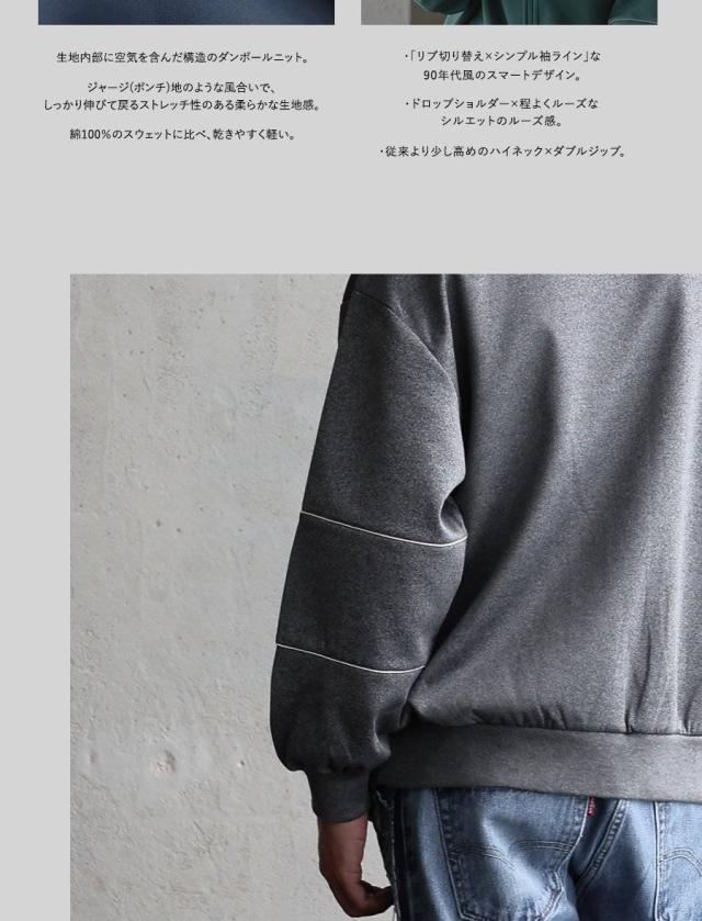 ・従来より少し高めのハイネック×ダブルジップ。