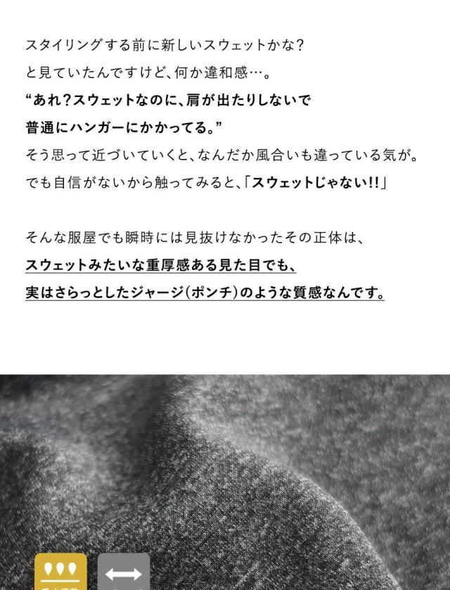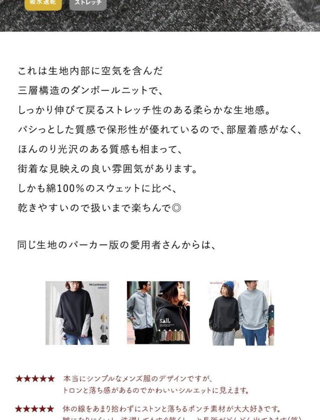 [素材]本体:ポリエステル95% ポリウレタン5% リブ:ポリエステル98% ポリウレタン2%