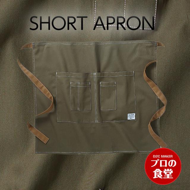 エプロン カーキ グリーンモデル ショートエプロン 料理エプロン クッキング カフェエプロン 短いエプロン 動きやすい 男性も似合う 飲食 ガーデニング 庭 DIY ALL OK パーフェクト 綿100 ツイル 丈夫 耐久性 作業用エプロン ワークエプロン