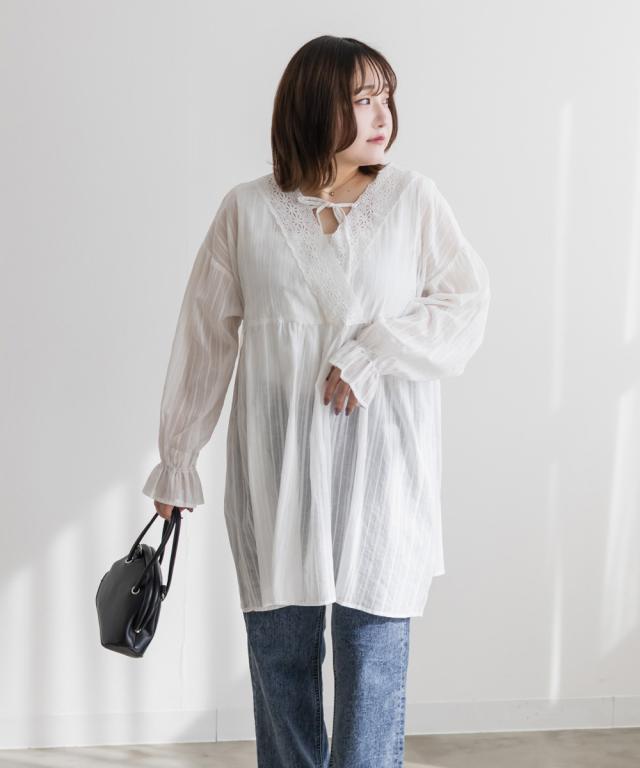 大きいサイズ/レディース/3L/4L/カシュクールレースチュニックブラウス