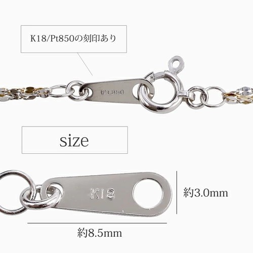 プレート部分にはK18,Pt850の刻印が入っており、素材の純度が証明されています。