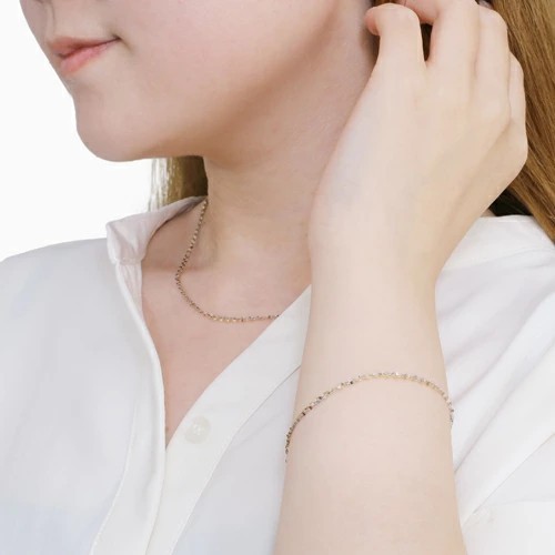 3本のペダルチェーンが織り成すランダムな輝きが大人っぽい上品さを演出。